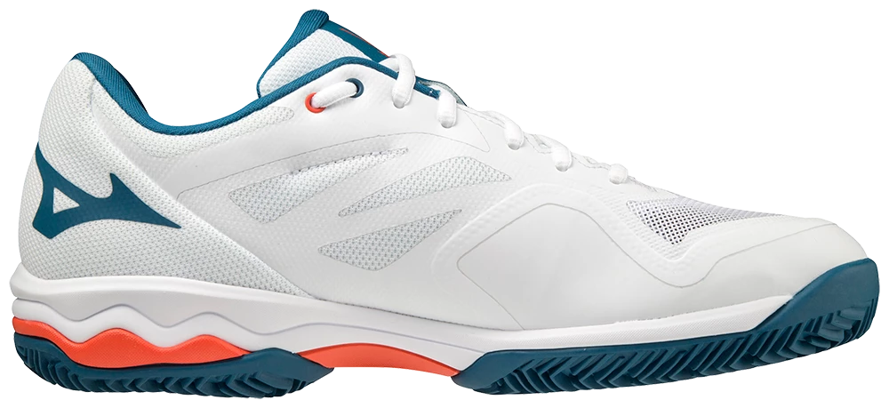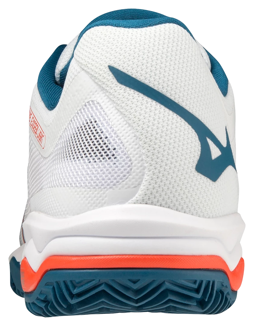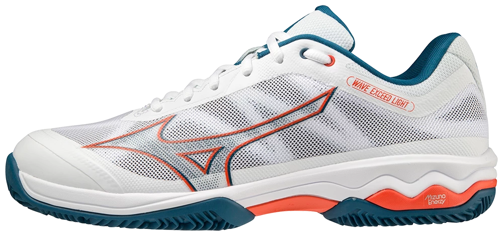 Mizuno Exceed Light CC Padel shoe (Mens, white/orange) is the successor to the popular “Exceed SL” which is known as a light shoe. This shoe has “Enerzy” in the heel which increases schock absorption and rebound. The shoe is for the player who seeks a quick and light shoe which can get the player from defensive to offense on the net as fast as possible. The shoe is made with a clay court sole which ensures great grip on the court.Â