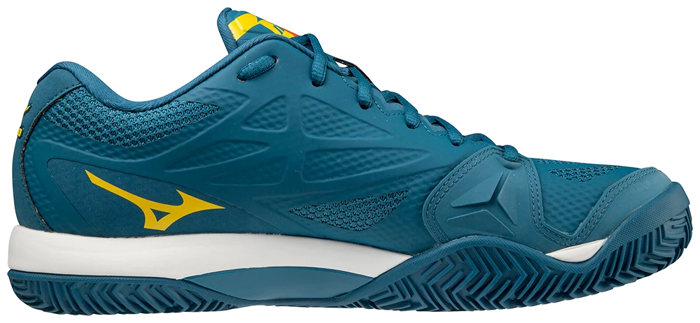 Mizuno Wave Intense Tour 5 CC Padel shoeย is a light, quick and stable padel shoe from Mizuno. The shoe is made with the well known “Wave technology”, which adds comfort without making the shoe to heavy. The diagonal D-Flex design in the mid-foot ensures quick and safe directional changes even under high pressure. The shoes upper part is made with a PU-Mesh-material which ensures both comfort and stability with breathability. The shoes clay court sole ensures good grip and contact with the court, and they are especially relevant when playing on courts with a lot of sand.ย