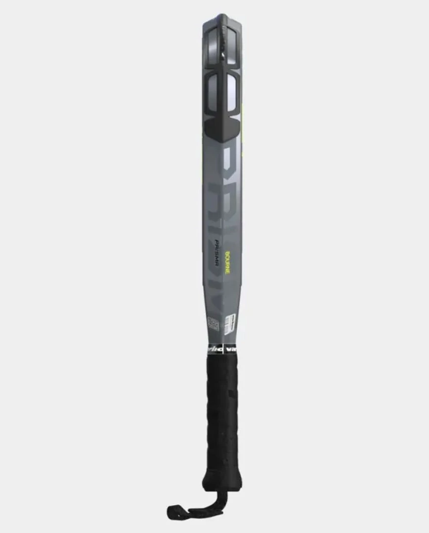 The Bourne Summum Prisma W is made with Varlion’s PRISMA frame, which reduces the point of contact with walls and surfaces by as much as 90% and air resistance by up to 10%. This results in a maneuverable racket that is easier to accelerate.