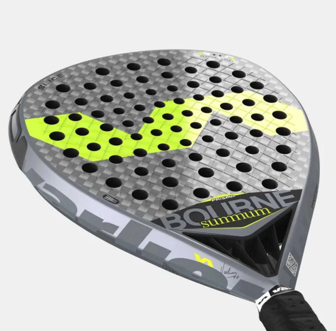 Please note that Varlion offers two rackets in the Bourne Summum Prisma series, ending in a W and an S respectively. Therefore, to eliminate the impact of temperature on the racket’s playing characteristics, it has been produced with two types of rubber – a soft “W” and a harder “S”. The Varlion Bourne Summum Prisma W is designed for play in temperatures from 25 degrees and below, while the Varlion Bourne Summum Prisma S is designed for padel in temperatures from 25 degrees and up.